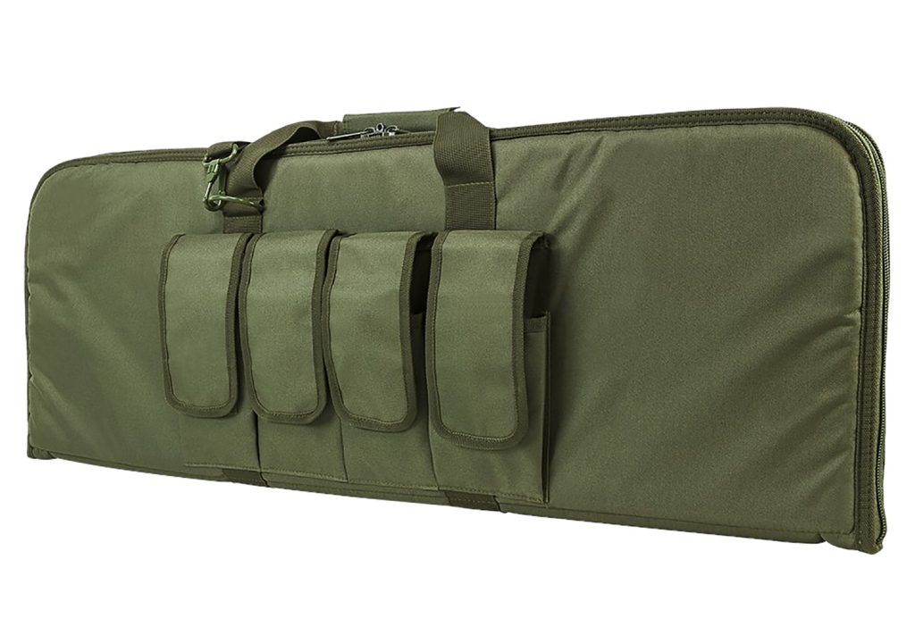 2960 series Carbine Gun Case is designed for carbines that are less than 36″ in overall length. This gun case has many popular features like heavy duty zippers that are lockable, four external magazine pouches, padded carry handle, and adjustable shoulder straps. This is a great case for protecting and transporting carbines to the range. Rectangular Padded Gun Case. Exterior dimensions are 36.0″ L X 13.0″ H. Four External Rifle Magazine Pouches with individual magazine flaps with hook and loop fasteners. Heavy Duty zippers that have metal zippers that can be locked with a small pad lock. Pad lock not included. Padded carry handle straps and a shoulder sling is included. Exterior material made with tough and durable PVC material that is water and chemical resistant. Rectangular shape makes the carbine gun case a little more discreet.