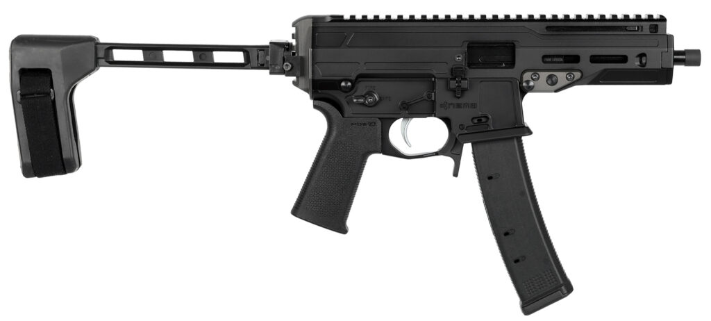 The Mongoose offers customers a lightweight low-recoil pistol-caliber carbine for competition home defense and plinking. – Barrel Length: 5.8 in – Overall Length: 13.67 in – Weight: 3.6 lb – Action Short recoil operating system – Frame PCC – Barrel Length 5.8 in – Firearm Overall Length 13.67 in 23.38 in (with extended brace) – Firearm Weight 3.6 lb 4.26 lb (with brace) – Barrel NEMO 5.8 steel barrel; 1:10 twist; threaded 1/2 x 28; QPQ nitrided ships with barrel thread protecter – Receivers NEMO extruded aluminum upper receiver and billet lower receiver – Handguard / Forearm Integral 10.25 top picatinny rail two M-LOK slots at 3 and 9 o’clock one M-LOK slot at 6 o’clock – Sling Attachment Rear back plate with picatinny rail for sling stock and accessory mounting – Bolt Lightweight short-recoil bolt – Trigger ALG ACT Trigger – Charging Handle Non-reciprocating forward charging handle with either left/right hand side compatibility – Muzzle Ships with two end caps: Flat End Cap for suppressed use Compensator End Cap for non-suppressed use – Safety Ambidextrous safety selector – Buffer Assembly Bolt-captured recoil spring and guide rod with additional secondary buffer spring/plunger – Brace SB Tactical FS1913 brace – Grip MAGPUL MOE SL grip – Magazine MAGPUL 35-round PMAG 35 EV9 – Additional Features Ambi bolt catch/release with last round bolt hold open. Ambi magazine release. Easy AR-style two pin disassembly. Easy takedown lever to field strip bolt and barrel. Bolt actuated ejector. – Compatible with (ammo) 9MM LUGER 9×19 mm do not use with +P+ ammunition – Suppressor Recommendation We recommend suppressors with a booster no longer than 5 ¼ and not heavier than 8.5oz – Warranty Limited lifetime warranty – Also ships with Custom NEMO soft range bag Owners manual w/ product registration