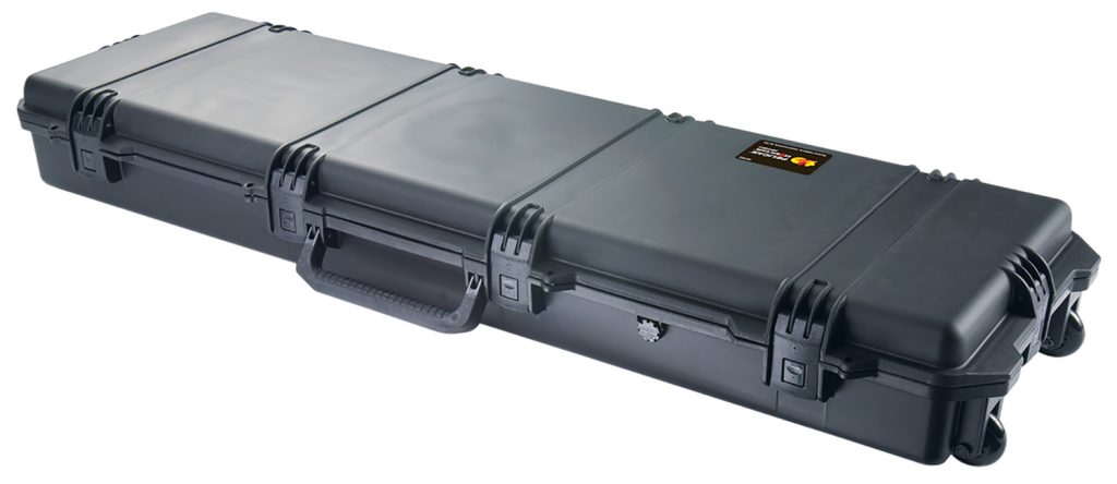 Pelican’s Storm Long Case has a unique Press and Pull latch that locks automatically, but opens with a light touch. Featuring six press and pull latches, three double layered soft grip handles, four padlockable hasps, in-line wheels, O-ring seal and a Vortex valve. Made in the USA.