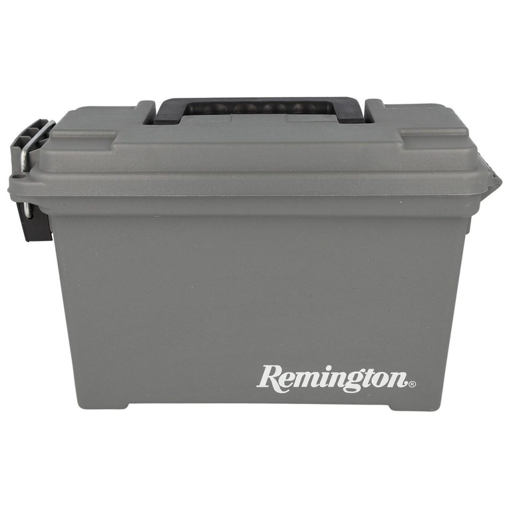 Remington polypropylene Field Box/Can Ammo Box for 30 caliber with a folding handle and heavy duty latching system.