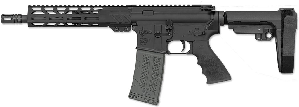 The Rock River Arms LAR-15M RRAGE tactical pistol features a low profile gas block; single stage trigger; lightweight aluminum free floating, 7.25″, M-LOK compatible handguard; SB tactical SB adjusting brace; threaded barrel and an A2 flash hider. Includes magazine, manual and warranty info.