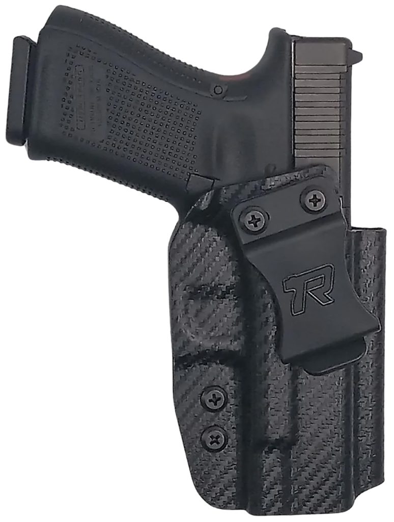 Hand Molded Adjustable Cant IWB KYDEX Holster for the Glock G19. These minimalist inside the waistband KYDEX Glock holsters protect your weapon from moisture while remaining extremely lightweight and durable. They are the perfect all-around holster for every day concealed carry of your Glock. These holsters are comfortable enough for everyday use and very easy to hide no matter how you are dressed.