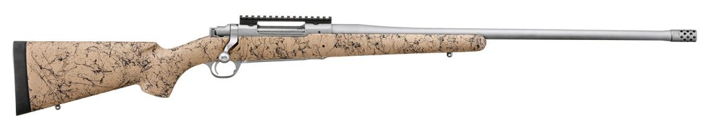 Caliber: 7mm PRC – Stock H-S Precision® Tan-Black Speckled Synthetic – Overall Length 46.25 – Barrel Length 24 – Capacity 3 – Sights None – Thread Pattern 5/8-24 – Material Stainless Steel – Finish Hawkeye Matte Stainless – Weight 8.1 lbs. – Twist 1:8 RH – Length of Pull 13.50 – Grooves 5 – Non-rotating Mauser-type controlled round feed extractor is among the most positive case extraction systems ever invented and features a fixed blade-type ejector that positively ejects empty cases as the bolt is moved fully rearward. – Hinged solid-steel floorplate for easy unloading without having to chamber each cartridge. Features an engraved FTW Hunter logo and patented latch that is flush with the trigger guard to avoid accidental dumping of cartridges. – 20 MOA Picatinny rail secured with four #8-40 screws for increased long-range elevation capabilities overtop the traditional integral scope mounts that are machined directly on the solid-steel receiver. – Three-position safety is easily accessible and allows the shooter to lock the bolt or to load and unload the rifle with the safety engaged. – Pro-Series® H-S Precision® tan-black speckled synthetic stock features a full-length aluminum bedding block and slender pistol grip with Pro-Center® technology. – The LC6 trigger features smooth crisp performance right out of the box for increased accuracy on the range or in the field. – Cold hammer-forged barrel results in ultra-precise rifling that provides exceptional accuracy and longevity. – Rugged one-piece stainless steel bolt. – The Ruger® Muzzle Brake System includes a removable radial-port muzzle brake that significantly reduces felt recoil. For times when the brake is not preferred it may be replaced by the included dynamically-matched muzzle weight. Switching between the brake and the weight will not change the bullet’s point of impact for a particular load. The included thread protector may be used if neither the brake nor the weight is desired. – Also includes: studs for mounting sling swivels.
