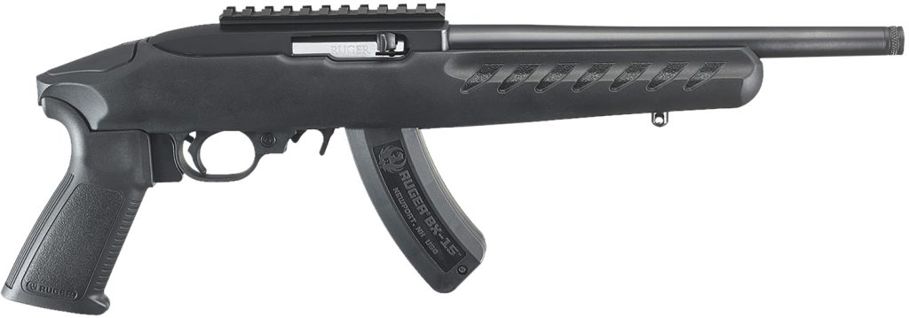 The Ruger 22 Charger pistol features a cold hammer-forged, threaded barrel with 1/2″-28 thread pattern. It utilizes a standard ergonomic pistol grip, Picatinny rail and BX-15 magazine. Includes an adjustable bipod and magazine. Compatible with the Silent-SR sound suppressor.