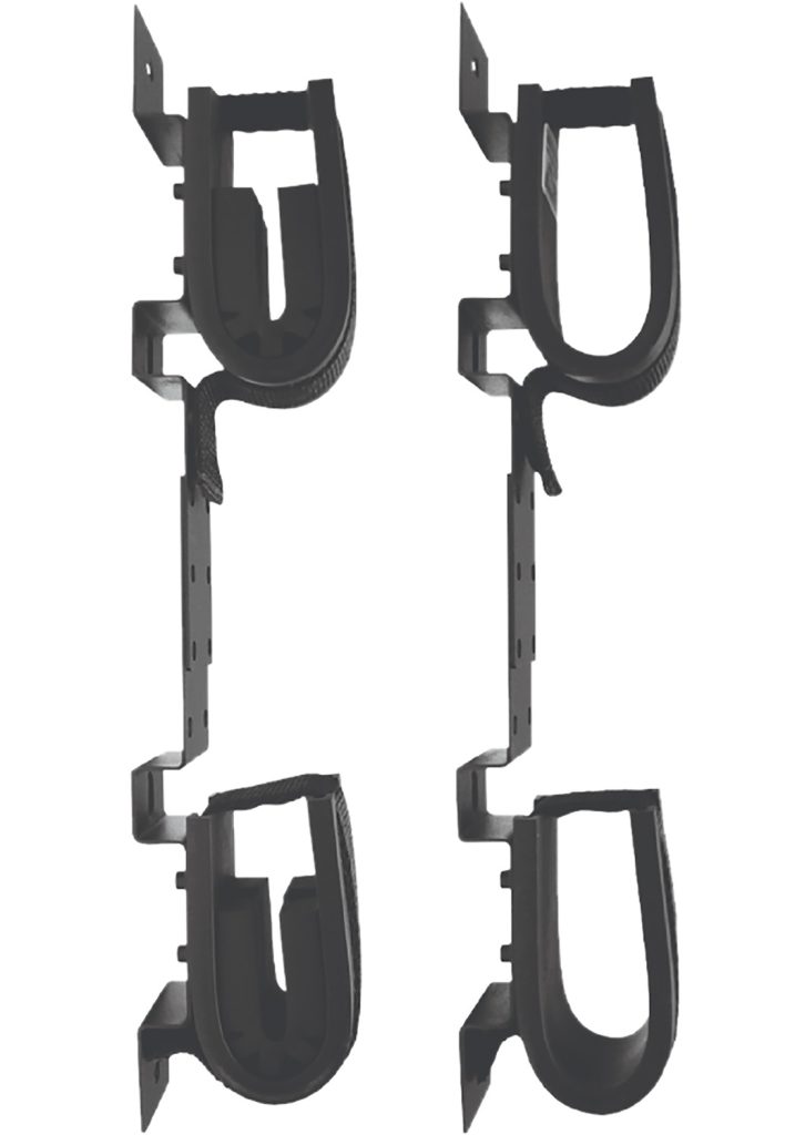 Rugged Gear’s Adjustable Screw Mount Double Hook is for permanent installation for horizontal mounting on walls, in utility vehicles, toolboxes or out-of-sight locations such as under trunk lids. Its easy to install with self-drilling screws or with bolts, nuts & washers (all included). This model mounts to any secure interior location that accepts bolts or screws; on roofs, in vans or trucks, boats, golf cars, off-road vehicles, specialty hunting & shooting vehicles, trailers. It you to adjust the space between the two hooks for greater flexibility. The mounting bracket is made of powder coated steel.