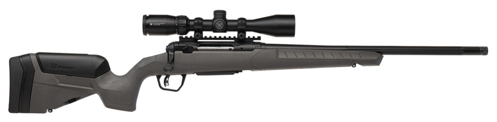 Meet the next evolution in precision hunting rifles: 110 Trail Blazer XP is a rugged performance-first platform wrapped in a Flat Dark Gray 110 Trophy stock with user-friendly LOP adjustment and a Black Ink Cerakoted barreled action for long-lasting corrosion resistance. Built for accuracy and handling it features a jeweled bolt body user-adjustable AccuTrigger heavy sporter straight-fluted carbon-steel barrels (16.5-20 depending on caliber) with a threaded muzzle and a one-piece 0 MOA rail topped with a Vortex Crossfire II 3-9×40 scope. Practicality meets modern design with a detachable box magazine multiple caliber options (including left-hand configurations) and the balance and refinement to perform from the truck to the mountain. – FEATURES – Flat Dark Gray Trophy Stock w/LOP Adjustment – Exclusive LimbSaver® Recoil Pad With 50% Recoil Reduction – Black Ink Cerakoted Barreled Action – Jeweled Bolt Body – User-adjustable AccuTrigger – 16.5-20 Carbon Steel Barrels (Caliber Dependent) – Heavy Sporter Barrels w/ Straight Fluting – Threaded Barrel – One-piece 0 MOA Rail – Vortex Crossfire II 3-9×40 mounted and bore sighted scope – Detachable Box Magazine