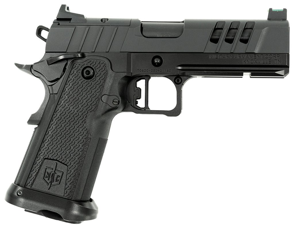 The MAC 9 DS redefines the modern carry pistol with its innovative design and robust features blending cutting-edge engineering with the classic 1911 platform. Crafted for shooters who demand durability precision and tactical versatility this powerhouse is ideal for personal defense professional duty or high-performance range sessions. – Notable Features: – Forged Steel Frame and Slide – 70 Series Colt and STI® 2011 Compatible Parts – Machined Internals – Target Crowned Bull Barrel – Skeletonized Hammer and Trigger – Extended and Oversized Controls – Agency AOS Plate System w/ Integrated Glock Dovetail Rear Sight – Tisas Dovetail Front Sight – Co-Witness with Most Optics – 1yr Warranty/Lifetime Service Plan – Includes: – Hard Case – Agency Arms RMR Optic Plate – 2 Magazines – Cleaning Kit – Owners Manual – Action Type: Semi-Auto – Operation: Single Action – Caliber: 9MM – Frame/Receiver Slide Finish: QPQ Tenifer – Sights: Fixed Rear Black Front Fiber Optic – Optics Ready/Cut: AOS Plate System – Capacity (w/ Included Mags): 17+1 – Barrel Length: 4.25 – Barrel Finish: QPQ Tenifer – OAL: 7.6 – Height: 5.8 – Width: 1.5 – Weight (Unloaded): 2.03 lbs.