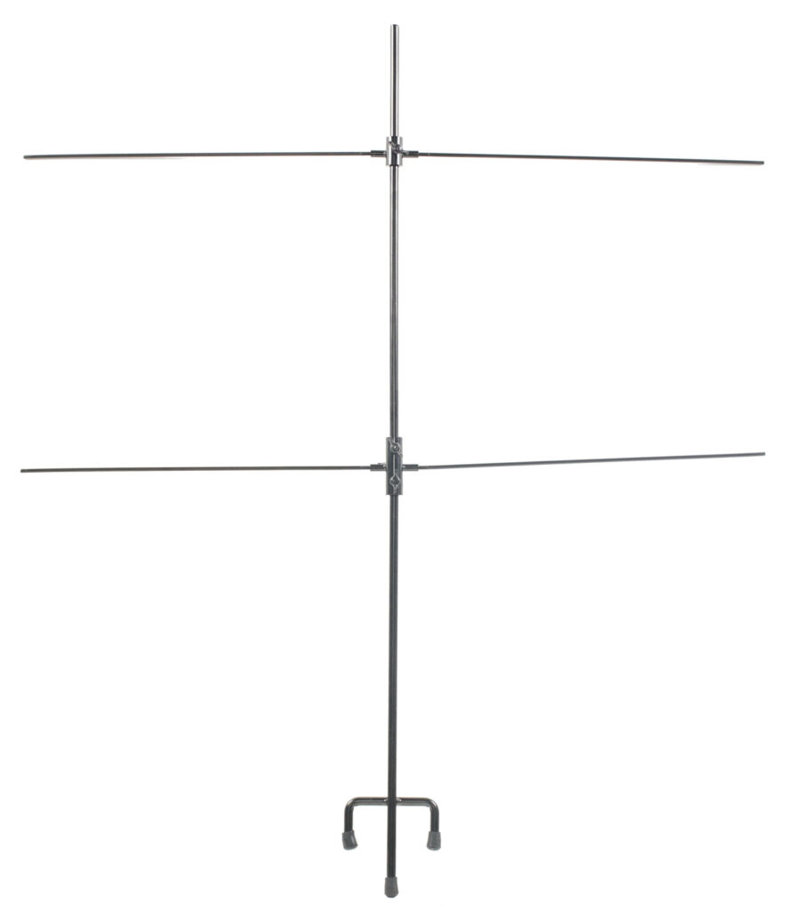 SME’s Double Paper Target Stand is constructed with a 5/16″ steel frame and has a black powder coat finish. The adjustable top horizontal bar accommodates various target sizes. It has a sturdy trident footer ground stake for stability and includes eight clips.