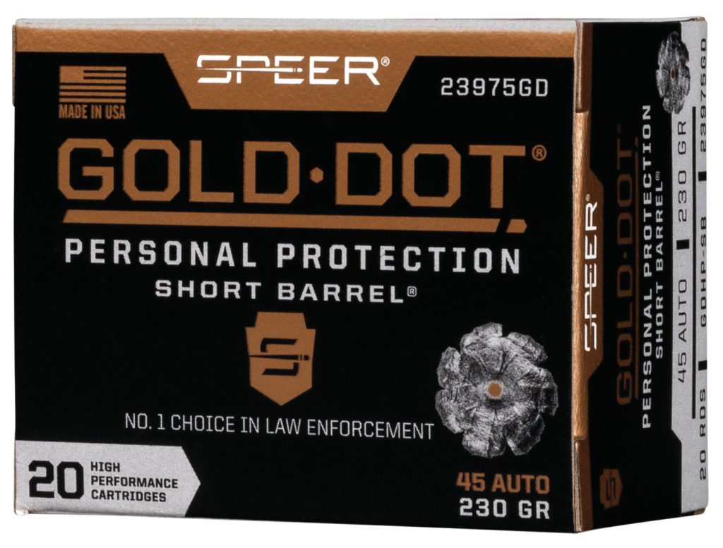 Gold Dot is the No. 1 load for law enforcement, and we offer the same performance to you. Each load features Speer’s exclusive Uni-Cor method, which bonds the jacket to the core one molecule at a time at the very beginning of the bullet construction process. This virtually eliminates core-jacket separation and creates a precision hollow point that is accurate, tough, and unbelievably consistent. The Short Barrel loads are designed to work in barrels as short as 1.9″ while producing less felt recoil and achieving reliable expansion and penetration.