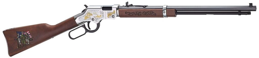 Henry Repeating Arms, MFG# H004MC2, UPC: 619835044174, UOM: EA, Spirit of the Corps 250th 2nd Edition, .22 S/L/LR, 20″ Octagon Barrel, Engraved, Blued/Walnut, 16-rd, HENR, HENRLG12, HENRLGALL, LG12, LGALL