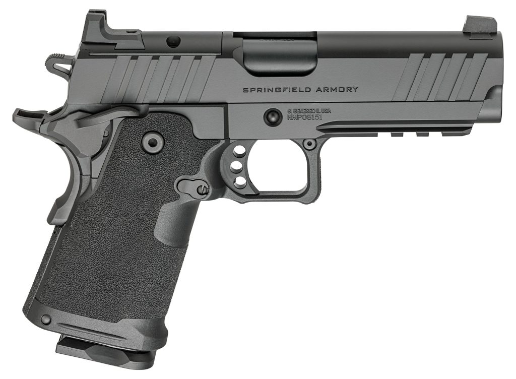 The Prodigy Compact from Springfield Armory® takes the proven 1911 platform and enhances it with double-stack capacity and a carry-focused feature set. Reconfigured around a 15-round double-stack magazine the Prodigy’s compact polymer grip module mounts to its lightweight aluminum frame to reduce weight while a shortened beavertail and recontoured hammer further downsize the overall footprint. Optics ready with a tritium front sight and and Picatinny rail the Prodigy Compact combines the most beloved characteristics of the 1911 with modern capacity for EDC. – Caliber 9mm – Color Black – Barrel 4.25 Forged Stainless Steel Black DLC Match Grade Bull 1:16 – Slide Forged Carbon Steel Black Cerakote® Optics-Ready – Frame Billet 7075-T6 Hardcoat Anodized Aluminum Black Cerakote® – Sights Tritium Front Black Serrated Rear – Recoil System 2 Piece Full Length Guide Rod – Grips Polymer – Magazines (2) 15-Round – Weight 29 oz – Length 7.8 – Height 5.1