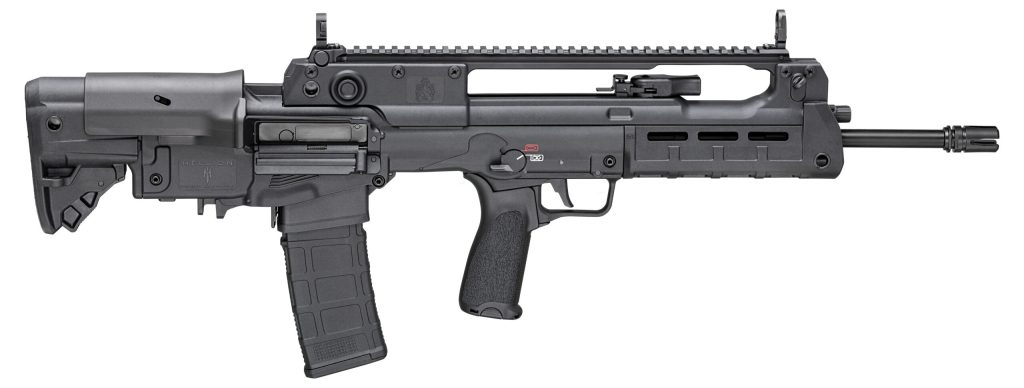 The Springfield Armory® Hellion represents a radically unique and innovative approach to firearms design helping to redefine perceptions of semi-automatic 5.56mm performance. Featuring a bullpup configuration where the action is located behind the trigger the Hellion 18 features a short overall length for compact handling along with enhanced ballistic performance due to its longer barrel. Ambidextrous controls work in concert with a reversible case ejection system for maximum adaptability. The result is a 5.56 that combines portability with potent performance. – Caliber 5.56x45mm NATO (.223 REM) – Color Black – Barrel 18 CMV Melonite® 1:7 – Front Sight Integrated Flip-Up Elevation Adjustable – Rear Sight Integrated Flip-Up w/ 5-Position Aperture Windage Adjustable – Bolt Carrier Group Proprietary Melonite® – Gas System 2-Position Adjustable Short Stroke Piston – Handguard Polymer M-Lok® – Stock 5-Position Adjustable w/ Cheek Riser – Muzzle Device 4-Prong Flash Hider – Charging Handle Ambidextrous Non-Reciprocating – Safety Switch Ambidextrous – Grip BCMGUNFIGHTER Mod 3 – Magazines (1) 30-Round Magpul PMAG Gen M3 – Weight 8 lbs 3 oz – Length 30.25-31.75
