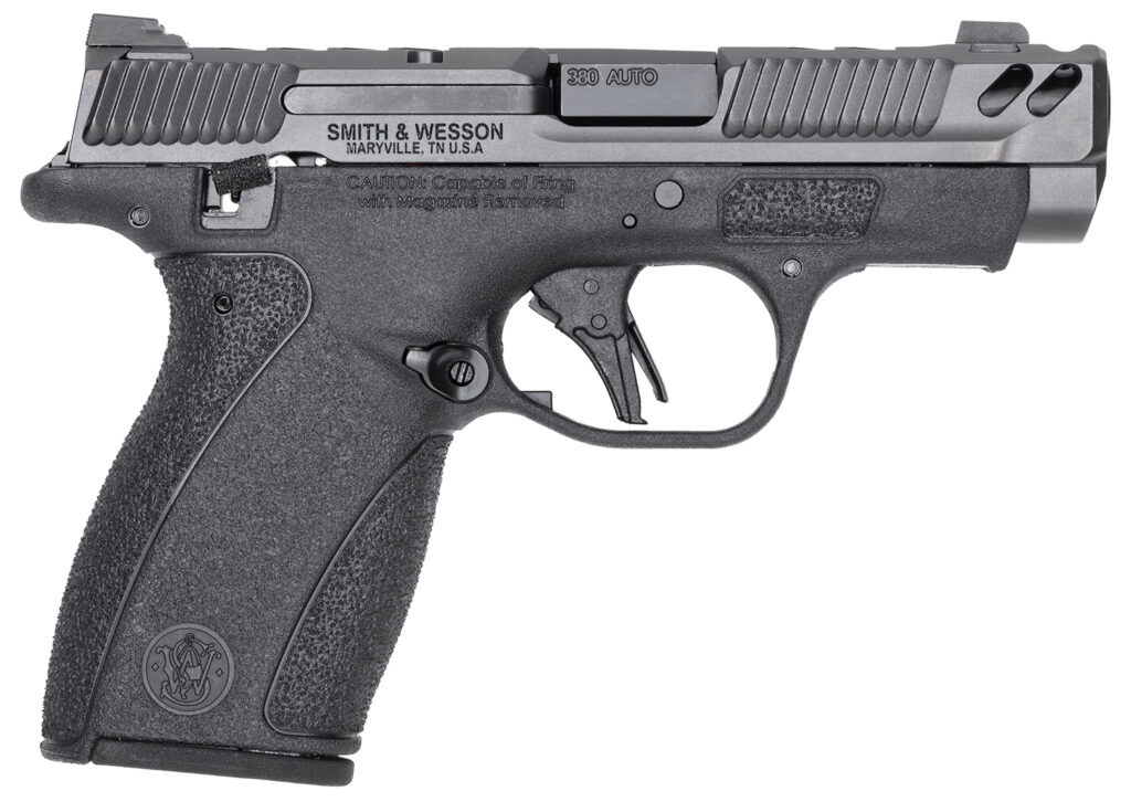 The performance Center Bodyguard 2.0 Carry Comp PowerPort diverts gas upwards to reduce felt recoil when firing. Featuring a redesigned slide, manual thumb safety and Ameriglo Night Sights; slim, textured grip and ported barrel. Includes one 10rd and one 12rd magazine.