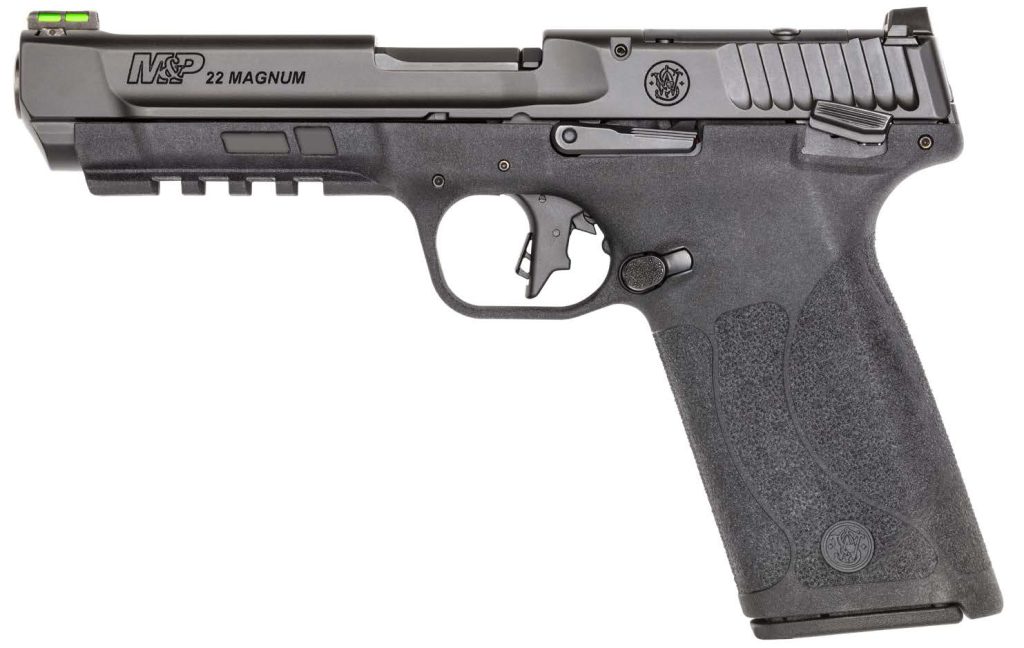This handgun is all about bringing more- more reliability more consistency more excitement. With 10 rounds in the magazine you can enjoy a compact and efficient shooting experience. Using the Tempo barrel system the front gas port keeps everything working as it should- no moving parts until they’re supposed to be moving. With an optics-cut slide out of the box you can mount most micro red dots and hit the range. – Model M&P®22 MAGNUM 10-round Compliant Model – Overall Width 1.13 (2.87 cm) across frame – Mag. Weight 2.0 oz. (56.7 g) – Front Sight Fiber optic (green) – Grip Textured – Rear Sight Black notched – Pistol Weight 22 oz. (623.7 g) – Frame Size Full-Size – Overall Height 5.7 (14.5 cm) with mag in pistol – Barrel 4.35 (11 cm) Stainless Steel w/Armornite® finish – Action Internal Hammer-Fired Gas-Operated – Overall Length 8.4 (21.3 cm) with mag in pistol – Slide Stainless Steel w/Armornite® finish – Rifling 1:10 – Sight Radius 7.0 (17.8 cm) – Frame Black Polymer