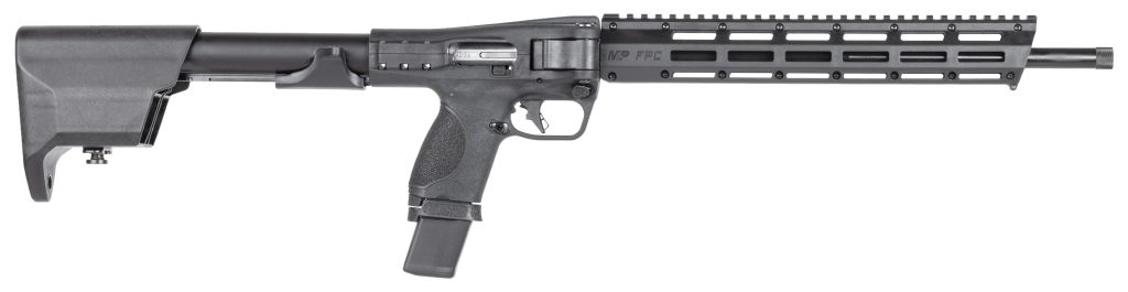 Smith & Wesson®’s M&P FPC features a slim and compact design that allows it to be stowed away and accessible when needed. Inspired by our M&P handguns the M&P FPC has a familiar grip and trigger is compatible with our 40 S&W full-size and compact magazines has the ability to store additional magazines with its in-stock storage and features M-LOK® slots in the forend to mount accessories. – Model M&P® FPC® – Caliber 40 SW – Barrel Length 16.25 – Capacity 15 20rd – Front Sight N/A Optics-ready – Rear Sight N/A Optics-ready – Barrel Length 16.25 (41.3cm) – Lengths Unfolded 30 3/a (J7.2 cm) Folded 16 3/s(4 0.6 cm) – Grip 4 interchangeable palmswell grip inserts – Action Blow back Semi-auto – Stock Fixed 14.5 L9P Polymer – Weight (unloaded) Carbine Only – 5.03 lbs. (2280 g) w/15-rnd mag – 5.23 lbs. (2370 g) w/three mags – 5.78 lbs. (2620 g) – Barrel Detail 4140 Steel Black Oxide Finish 9/16-24 Threaded – Bolt/Bolt Carrier Stainless Steel – Rifling 1:10 Twist – Handguard M-LOK® slots on handguard with Picatinny-style rail on top – Frame/Receiver Aluminum (tube)Hard Coat Black Anodized Finish