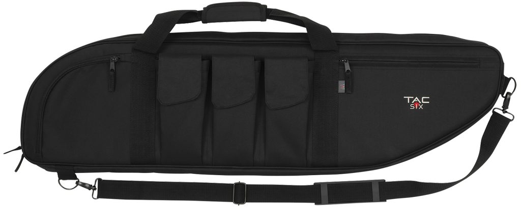 The Battalion Tactical Case is Patented by Allen and features a large internal pocket for your weapon, three magazine pockets, each designed to hold two magazines stacked together, plus front and rear accessory pockets. It includes a detachable shoulder strap and a padded handle grip.