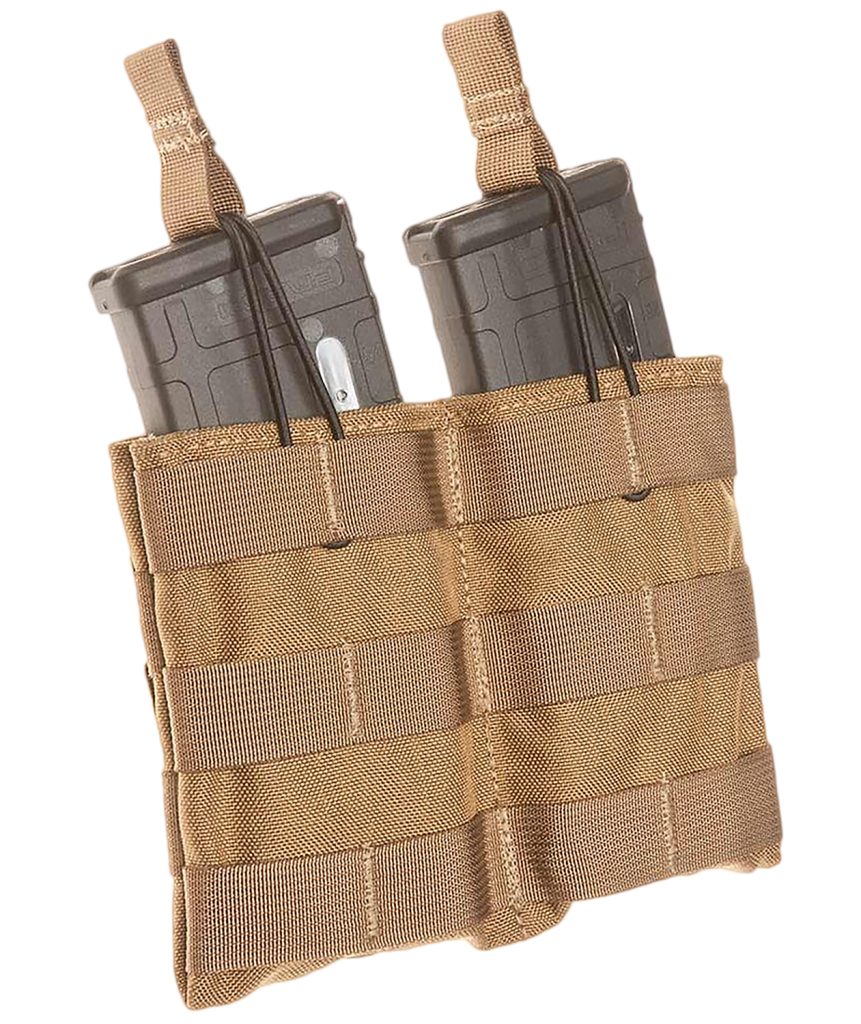 Double SPEED LOAD Rifle Magazine Pouch is designed with durability and fast reloading of your rifle in mind. Constructed with tough 1000 Denier Nylon exterior and blackened grommets that serve as convenient drain holes. Magazines are retained with top quality elastic cords and convenient pull tabs. Just flip them over when needing quick access when things get fast and furious.