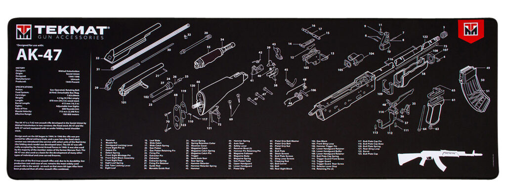 TekMat created the original printed cleaning and maintenance mat and with the new Ultra line of Premium TekMats, you get the same quality and durability as the original TekMat but with more space, thicker padding, and a premium stitched edge. The Ultra 44 TekMat is large enough to handle a fully disassembled rifle with room to spare for tools and accessories. The extra thick .25 padding not only provides a premium feel and high level of quality but it offers extra protection from any rough handling or drops while working on your firearm. The ultra soft, oil and water-resistant surface helps protect your firearm from scratches while the diagrams and illustrations help with cleaning, disassembly and are just plain fun to look at.