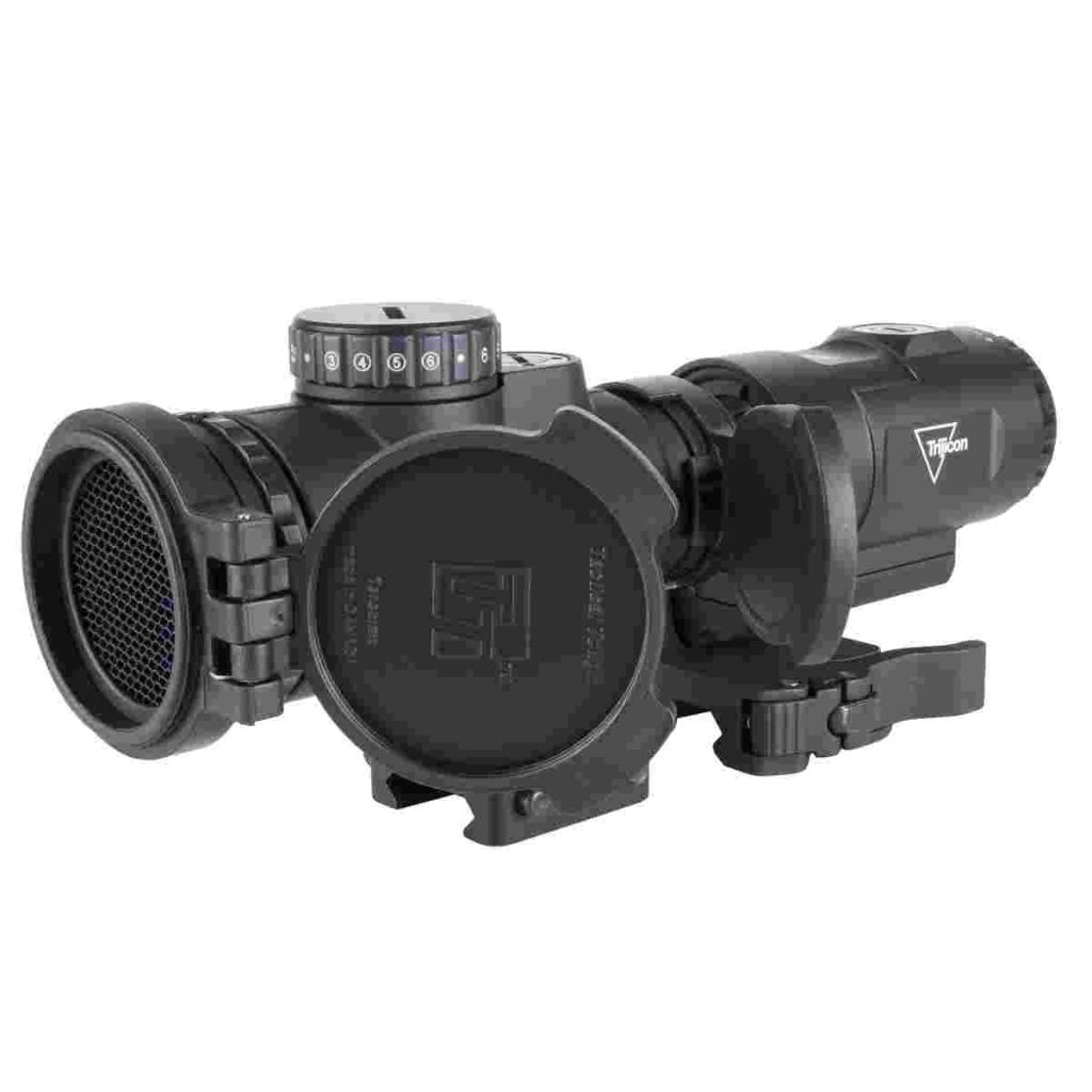 The Trijicon Miniature Rifle Optic (MRO®) HD Magnifier is a 3 power reflex optic magnifier specifically designed to magnify the target and target seen through the MRO HD red dot optic. By magnifying the target the shooter is able to use the crisp dot in the MRO HD to quickly and accurately engage targets at extended distances. The MRO HD Magnifier is short and compact which saves weight and rail space. The design features easy-to-set flush toolless adjusters that make centering the reticle in the field of view easy. The adjustable diopter allows the user to tune the optical performance to their eyes.