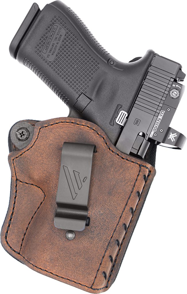 The Comfort Flex Deluxe Holster is crafted from our signature water buffalo leather and encompasses a polymer layer, sewn in-between two layers of leather for strength and rigidity. On the back is a closed-cell foam padding stitched to the leather that provides outstanding comfort and acts as a sweat barrier between the leather and skin. It has an adjustable draw tension and forward draw cant. The comfort Deluxe Holster is optic compatible and is designed for use with a 1.5″ wide belt designed for carry.