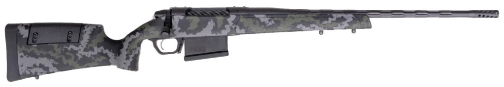 The Range XP 2.0 is built on Weatherby’s newest bolt action rifle platform the Model 307. Meant to complement the historic Mark V® and Vanguard® lineups the Model 307 action is a 2-Lug fully cylindrical action compatible with many aftermarket accessories. Model 307 is designed to accommodate the vast offerings of stocks triggers rails mounts and magazines that exist in today’s marketplace. The Range XP 2.0 is a shooter-friendly platform that can dominate the shooting range or the mountain range. The upgraded hand-painted stock is sure to make this rifle stand out. – FINISH – Fluted Barrel- Graphite Black Cerakote – Trigger Guard / Receiver- Graphite Black – Bolt / Bolt Knob- Graphite Black Cerakote – Stock- Hand painted green/grey sponge pattern with Graphite Black Cheek Piece