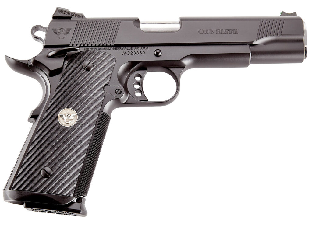 The Close Quarters Battle Elite blows the competition away with a standard package of custom features designed to meet the needs of tactical shooting professionals. It features a stainless steel frame with a carbon steel slide, beavertail grip/Ambi thumb safety, G10 diagonal flat-bottom grips, and a rear battlesight with fiber optic front. The slide features top slide serrations with serrated rear and front cocking serrations. It also utilizes a stainless match-grade barrel.