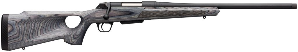 2021 SHOT Show Special Gray laminate finish matte blued steel finish thumbhole with raised cheekpiece M.O.A. trigger system nickel Teflon coating on bolt – RECEIVER Steel; Matte blued finish; Drilled and tapped for scope mount – BARREL Matte blued finish; Button rifled; Free-floating; Recessed target crown – ACTION Bolt-action; M.O.A. Trigger system; Two-position thumb safety; Bolt unlock button – STOCK Laminate; Thumbhole with raised cheek piece – FEATURES Two sling swivel studs on forearm; Thread protector